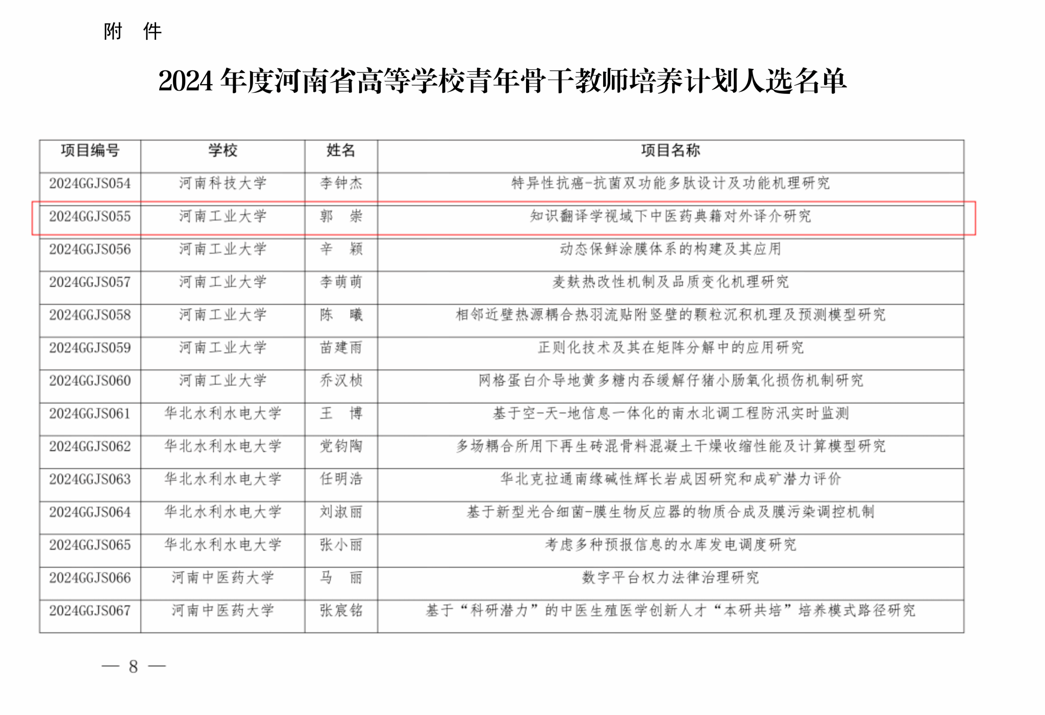 教师郭崇副教授位列其中,入选2024年度河南省高等学校青年骨干教师培养计划。