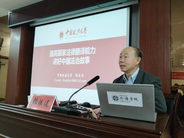 在5225会议室举办“提高国家法律翻译能力,讲好中国法治故事”主题讲座,特邀国家二级教授、中国政法大学钱端升讲座教授、博士生导师张法连教授主讲,近百名师生现场聆听。成人无码