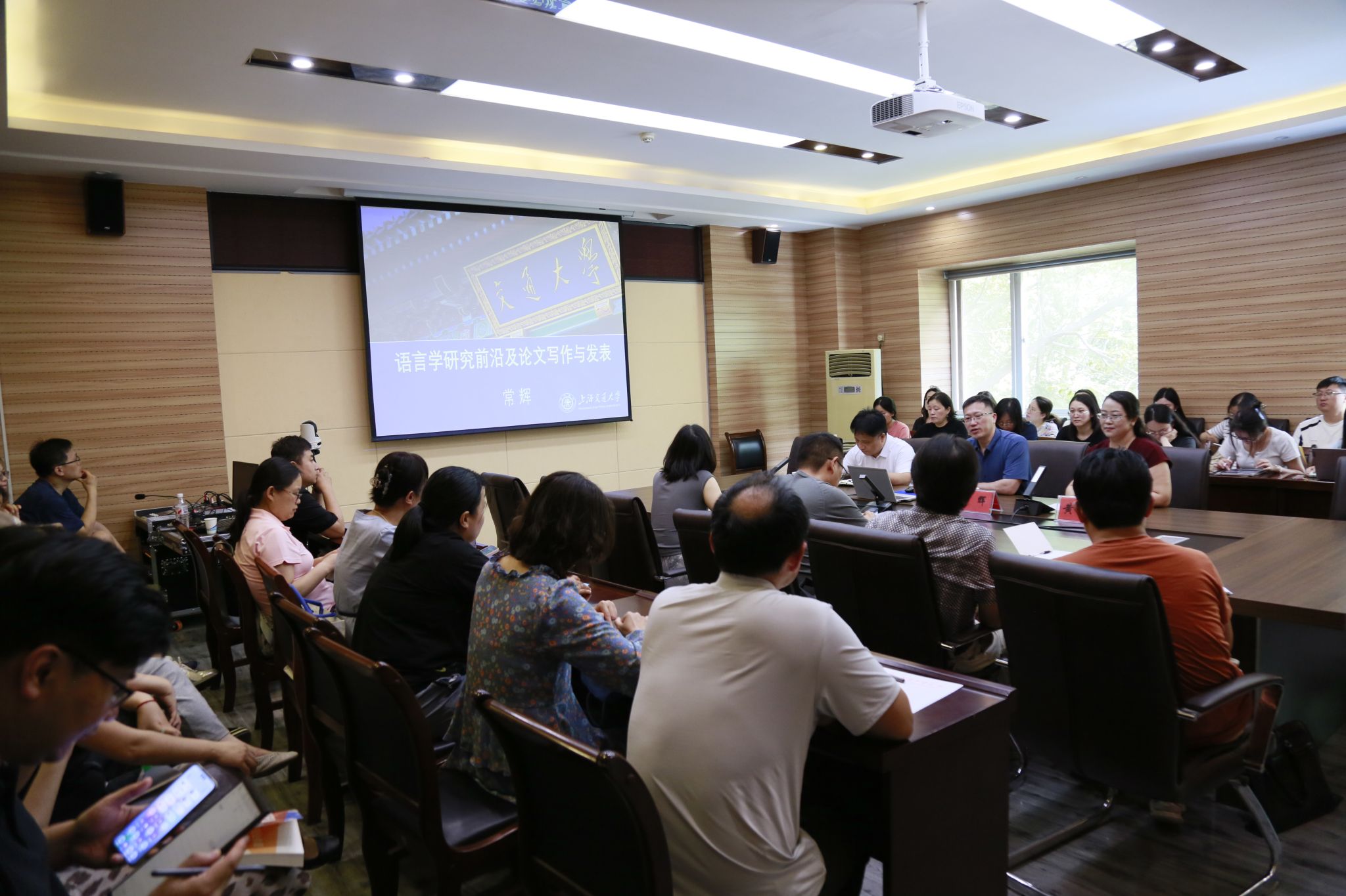 6月20日下午,上海交通大学常辉教授应邀做客成人无码 ,在5231会议室作“语言学研究前沿及论文写作与发表”专题讲座。讲座由院长黄辉辉教授主持,学院班子成员、学科骨干、青年教师及研究生共同聆听。