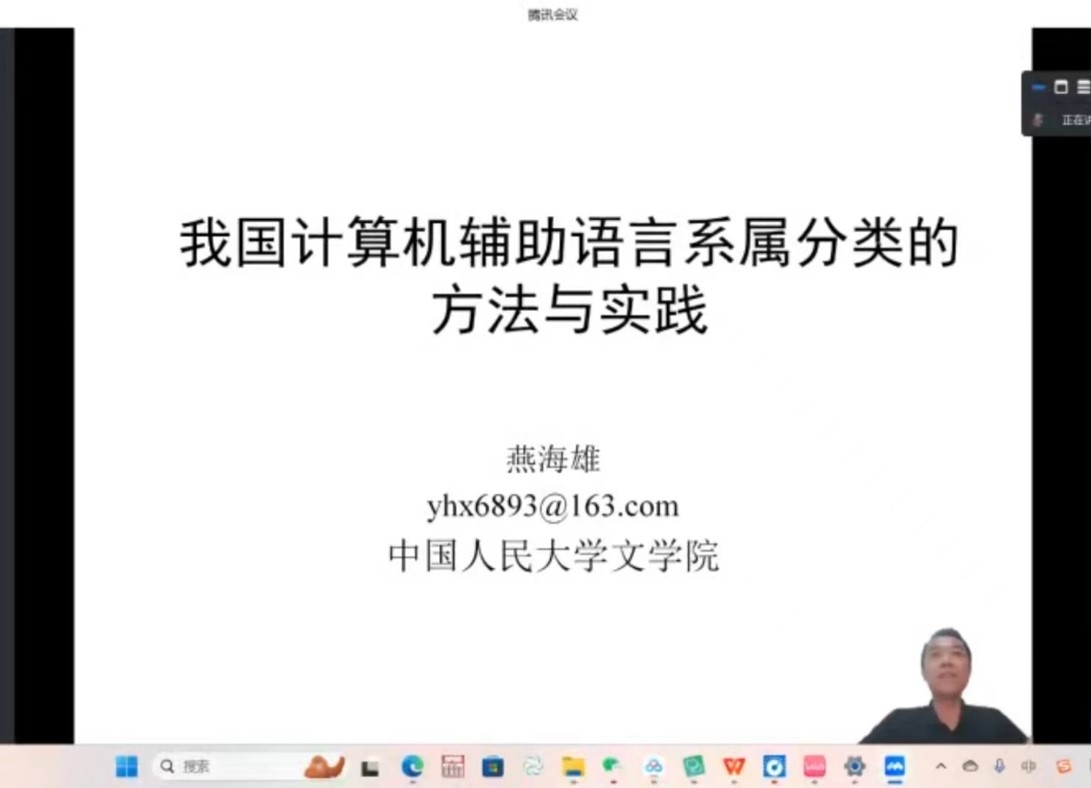 2023年5月19日下午,语言与文化研究系列讲座第019期暨外国语言与跨文化创新团队“语言自动分类”学术工作坊第2讲在腾讯会议平台上进行。中国人民大学燕海雄博士应成人无码 邀请,以“我国计算机辅助语言系属分类的方法与实践”为题做学术讲座,中国人民大学、中央民族大学、河南大学、云南师范大学和成人无码 成人无码 师生50余人在线聆听。该讲座由外国语言与跨文化创新团队团队负责人刘希瑞博士主持。