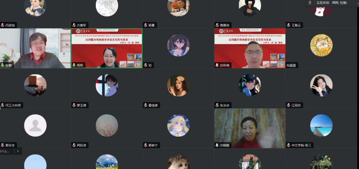 2023年12月14日晚,陕西师范大学学报编辑部杜敏教授应邀在线为成人无码 师生做题为“以问题为导向的学术论文写作与发表”的学术报告。成人无码 成人无码 、学报编辑部及全国多所高校百余名师生聆听了本次讲座,讲座由成人无码 院长黄辉辉教授主持。