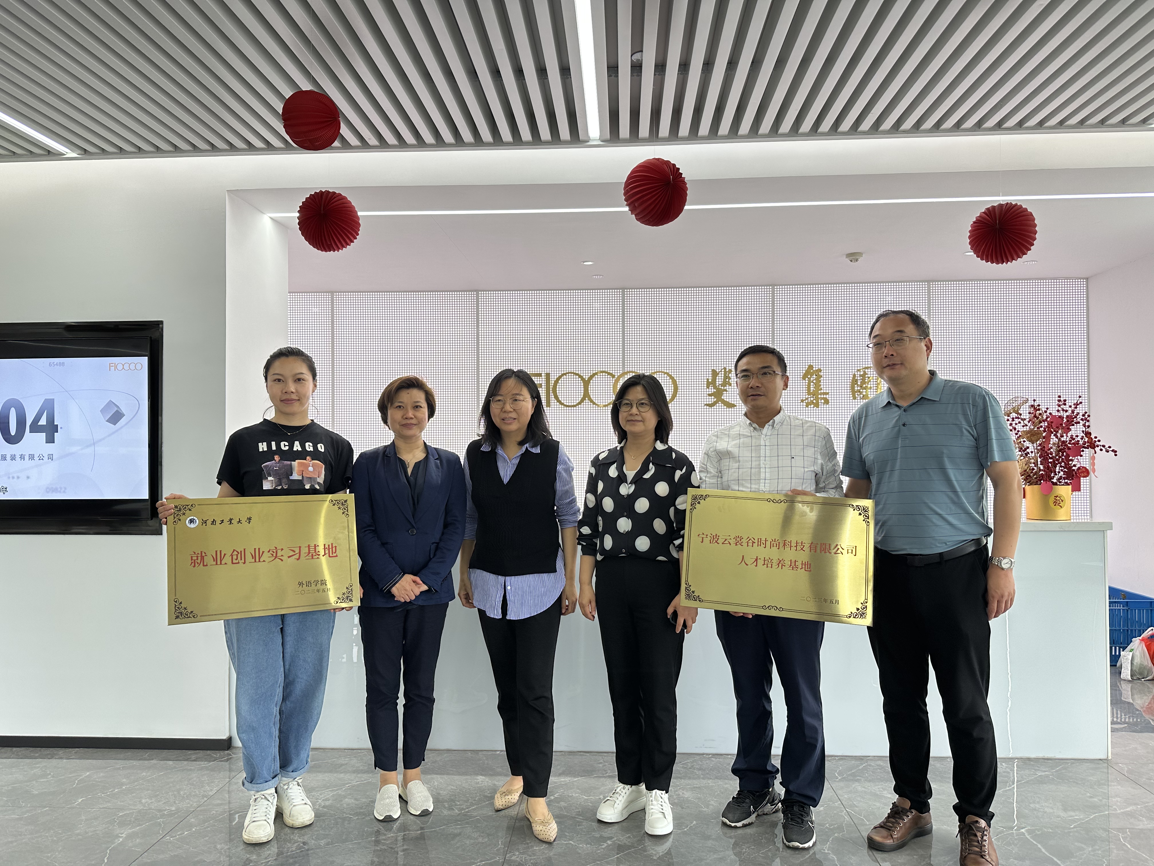 5月19日下午,在宁波云裳谷时尚科技有限公司园区,斐戈集团股份有限公司高管、校友夏爱平副总和公司人力资源主管陪同下,参观了云裳谷平台园区和公司的工厂及销售展示中心。在交流会上,夏爱平介绍了园区平台在产业人才、技术、资金、品牌、渠道、供应链等方面的情况,以及赋能园区中小企业产业创新和转型升级的功能与成效。双方围绕拓展合作领域、产教融合育人、共促学生就业等方面进行了沟通,希望以本次交流为契机,校企双方建立人才培养、就业联动的常态化合作机制,通过深化校企合作和供需对接,真正地实现校企双赢。会后,双方进行了人才培养基地和就业创业基地签约与授牌仪式。