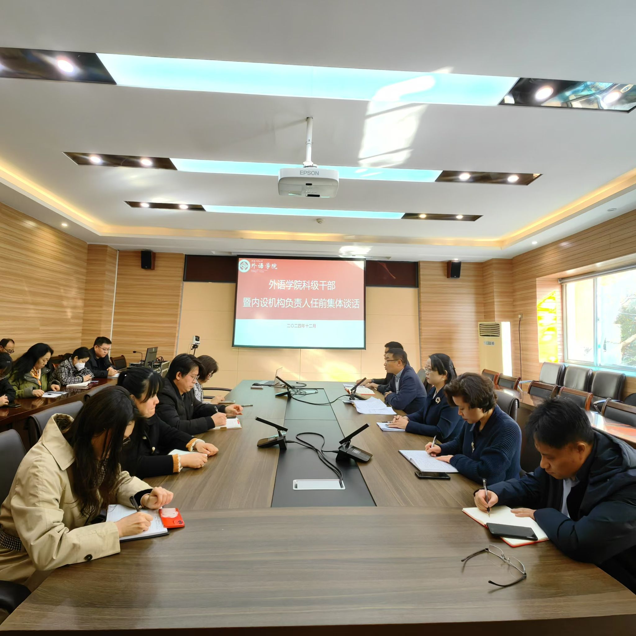 在5231会议室召开科级干部暨内设机构负责人任前集体谈话会。学院班子成员和学院全体科级干部及内设机构负责人参加会议。会议由学院党委副书记、纪委书记王晓东主持。