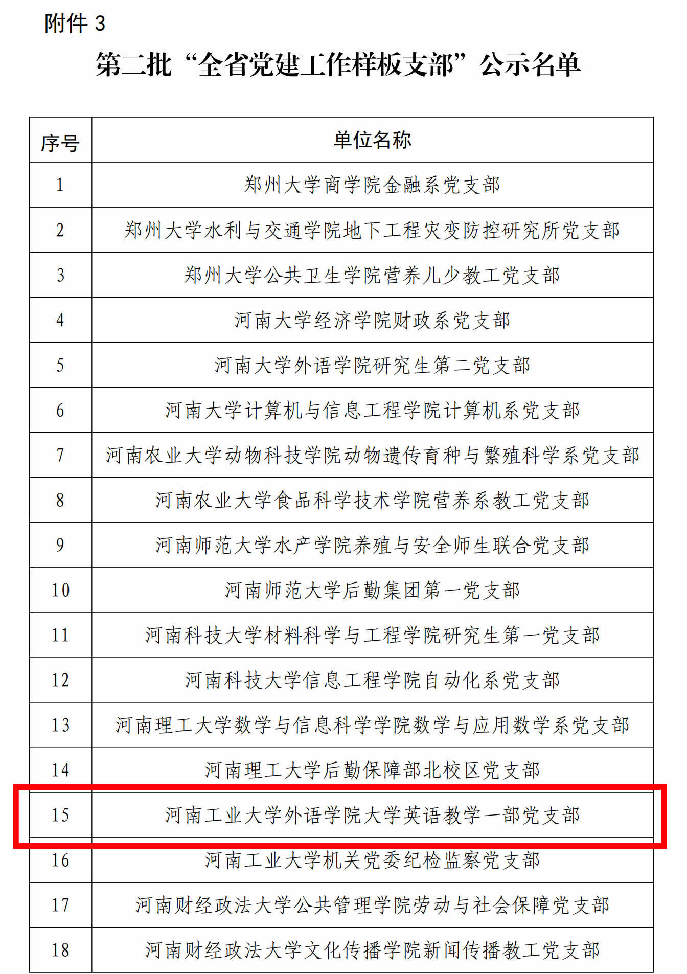 大学英语教学一部党支部获评第二批“全省党建工作样板支部”。