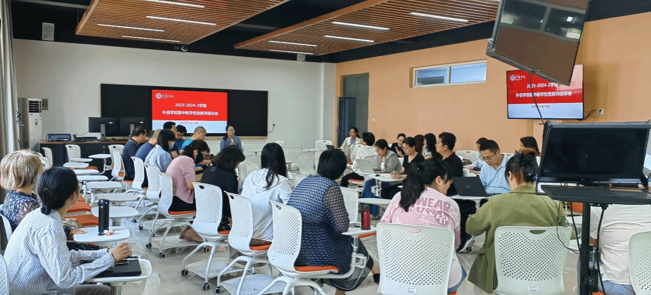 教师座谈会上,专业任课教师逐一介绍了本学期的课程开展情况,对学生学习纪律、学习态度、课程任务完成度等方面的表现表示肯定,从教学技术赋能、教学策略优化、数智翻译创新人才实验班建设方面,结合教学实践纷纷献言献策。