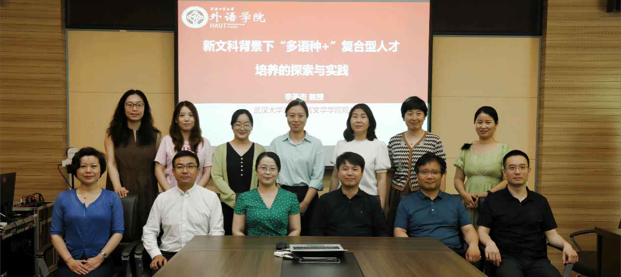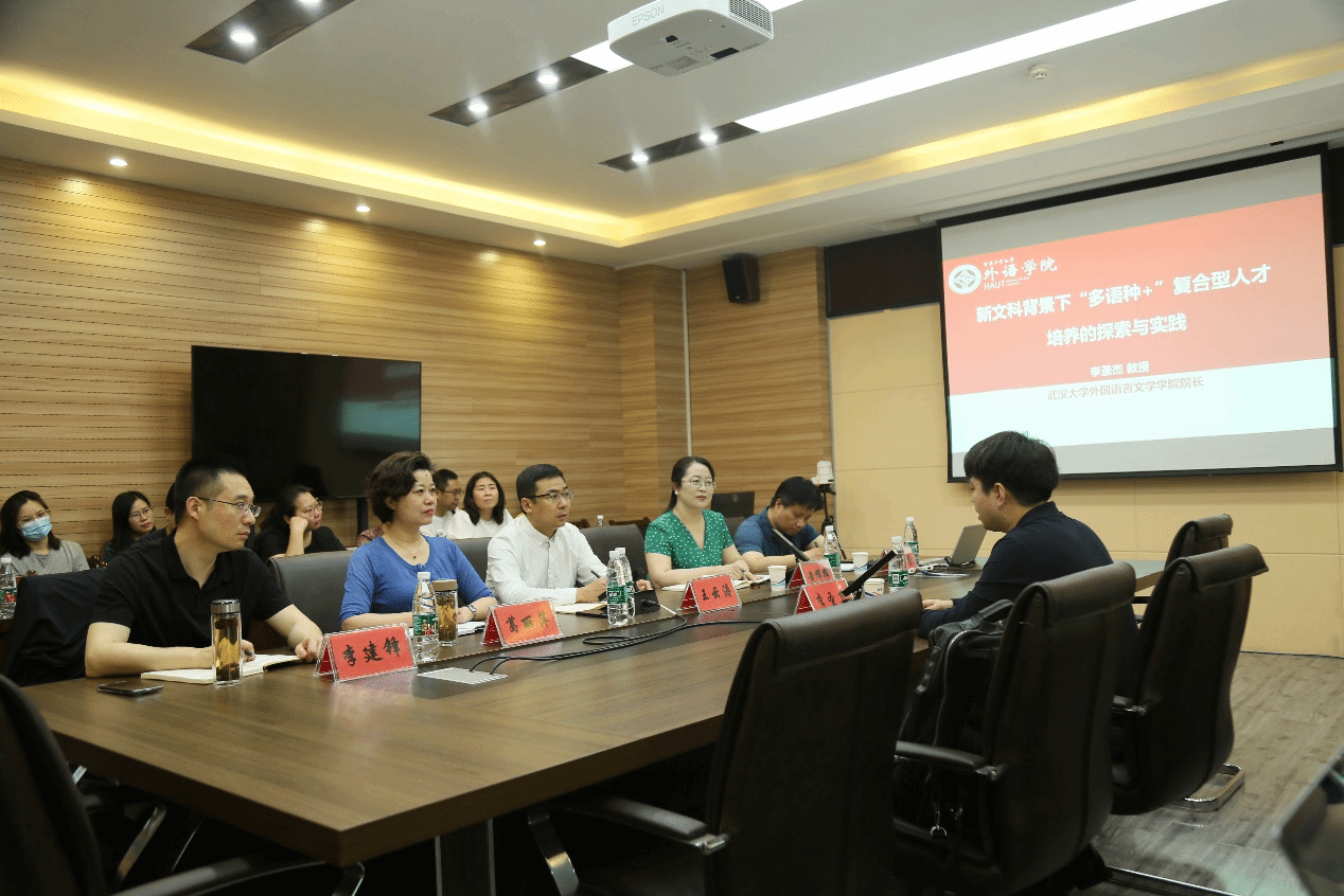 邀请,在5231会议室做题为“新文科背景下‘多语种+’复合型人才培养的探索与实践”的学术报告。学院领导班子、系部主任、骨干教师聆听了此次报告,报告会由院长黄辉辉教授主持。