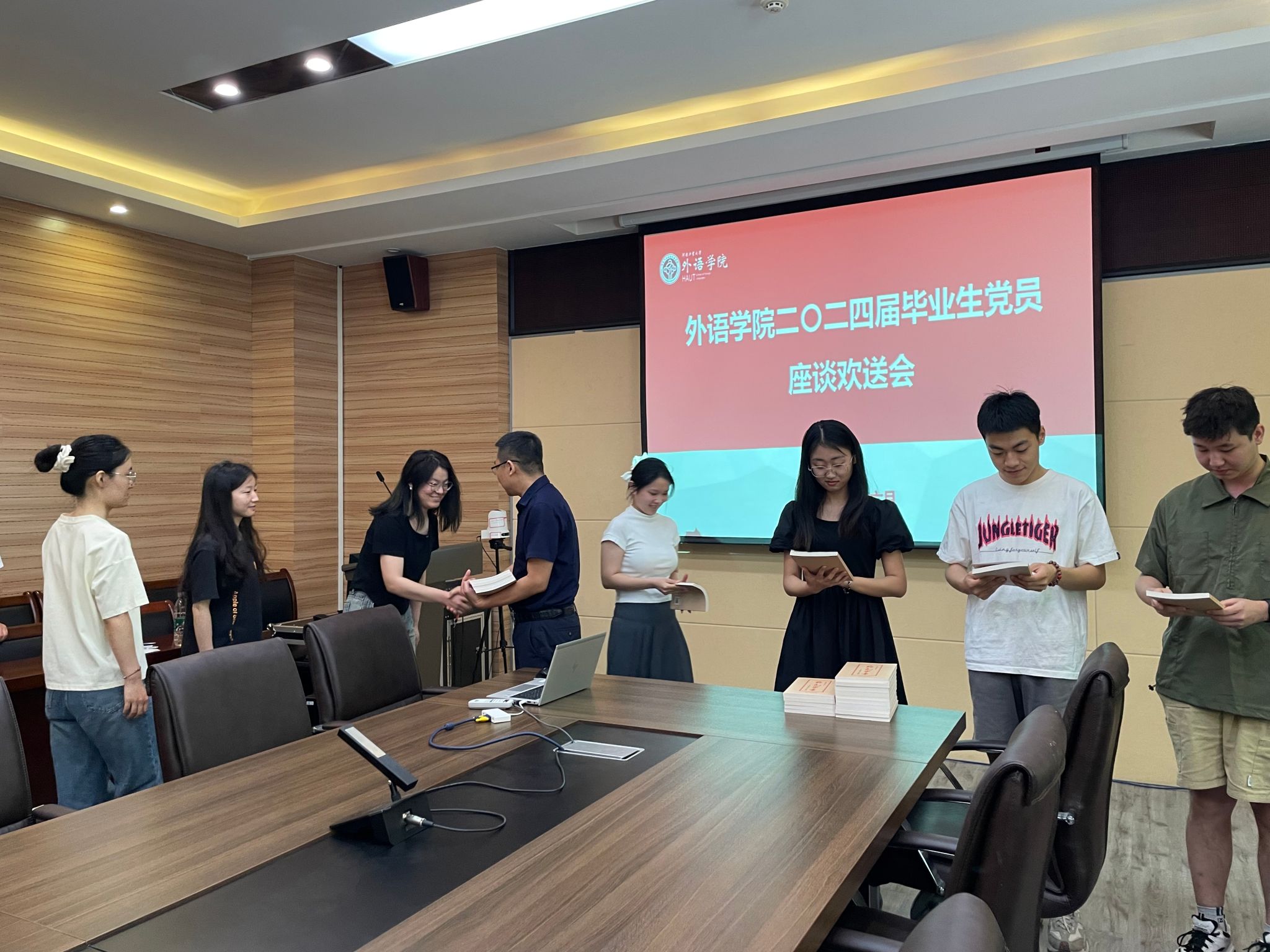 王云涛向毕业生党员赠书环节