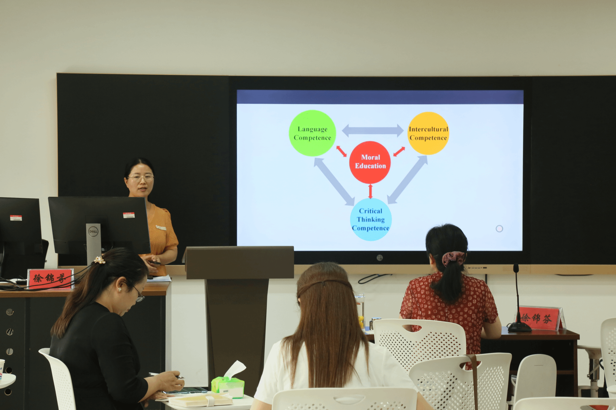 21日下午,徐锦芬教授指导学院教师依据自己的课程进行研究性教学设计,实施有效外语教学。成人无码