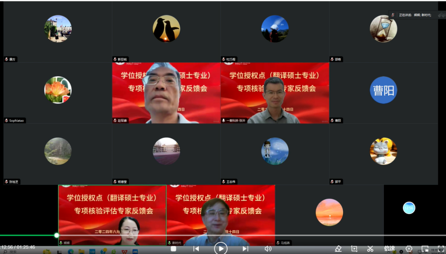 召开翻译专业硕士学位(MTI)授权点线上专项核验评估专家反馈会,会议由黄辉辉院长主持,翻译硕士导师、翻译系骨干教师等20余人参加了会议。