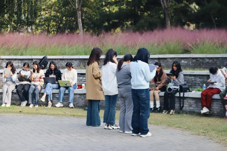 《英美文学导论》课程团队特别策划,旨在通过经典文学作品原文诵读,拓宽学生视野,传承文学经典,提高人文素养,共建文明校园。在绿树与粉黛交相辉映之中,领读老师康方、外教老师Oleg与同学们围坐一起,琅琅书声回荡在莲湖湖畔。