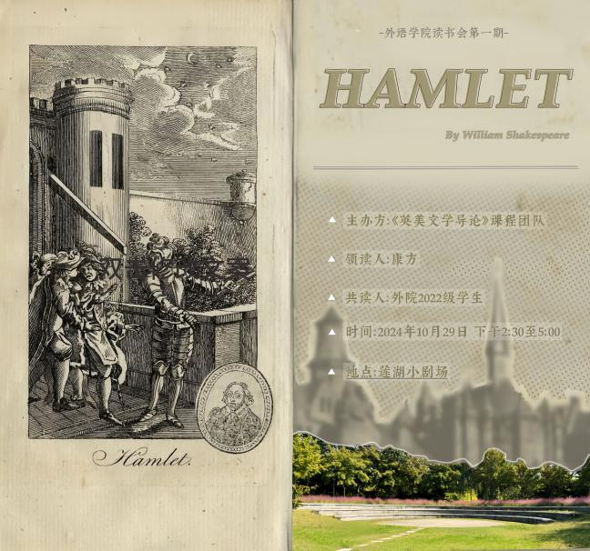 第一期读书会共读书目是英国文艺复兴时期重要的剧作家、诗人莎士比亚的最负盛名的代表作:《哈姆雷特》。康方老师以一本《莎士比亚主题画册》向同学们对莎士比亚生平、环球剧院、皇家莎士比亚剧院作简要介绍,并通过带读知识卡片,帮助同学们熟悉第一期共读书目《哈姆雷特》的故事梗概、创作背景、主题人物等。