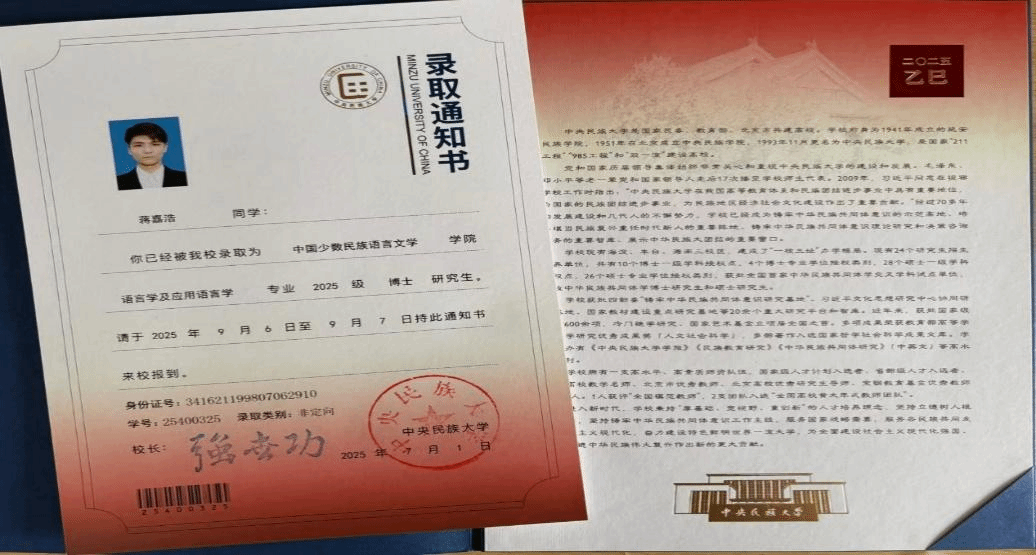 “研教融合”培养模式的成果缩影。导师刘希瑞教授领衔的科研团队为其量身打造“语言田野调查专项计划”,系统开放中国语言资源保护工程采录平台及少数民族语音语料库;学院通过“语言学名家讲堂”“语言科技工作坊”等平台深化专业训练,并资助其赴云南等地开展为期半年的语言田野调查;在考博攻坚阶段,学院组织专家团队提供“全流程申博指导”,助力实现学术进阶。这种“学术导师+实践平台+精准帮扶”的三维培养体系,为其学术发展注入强劲动能。