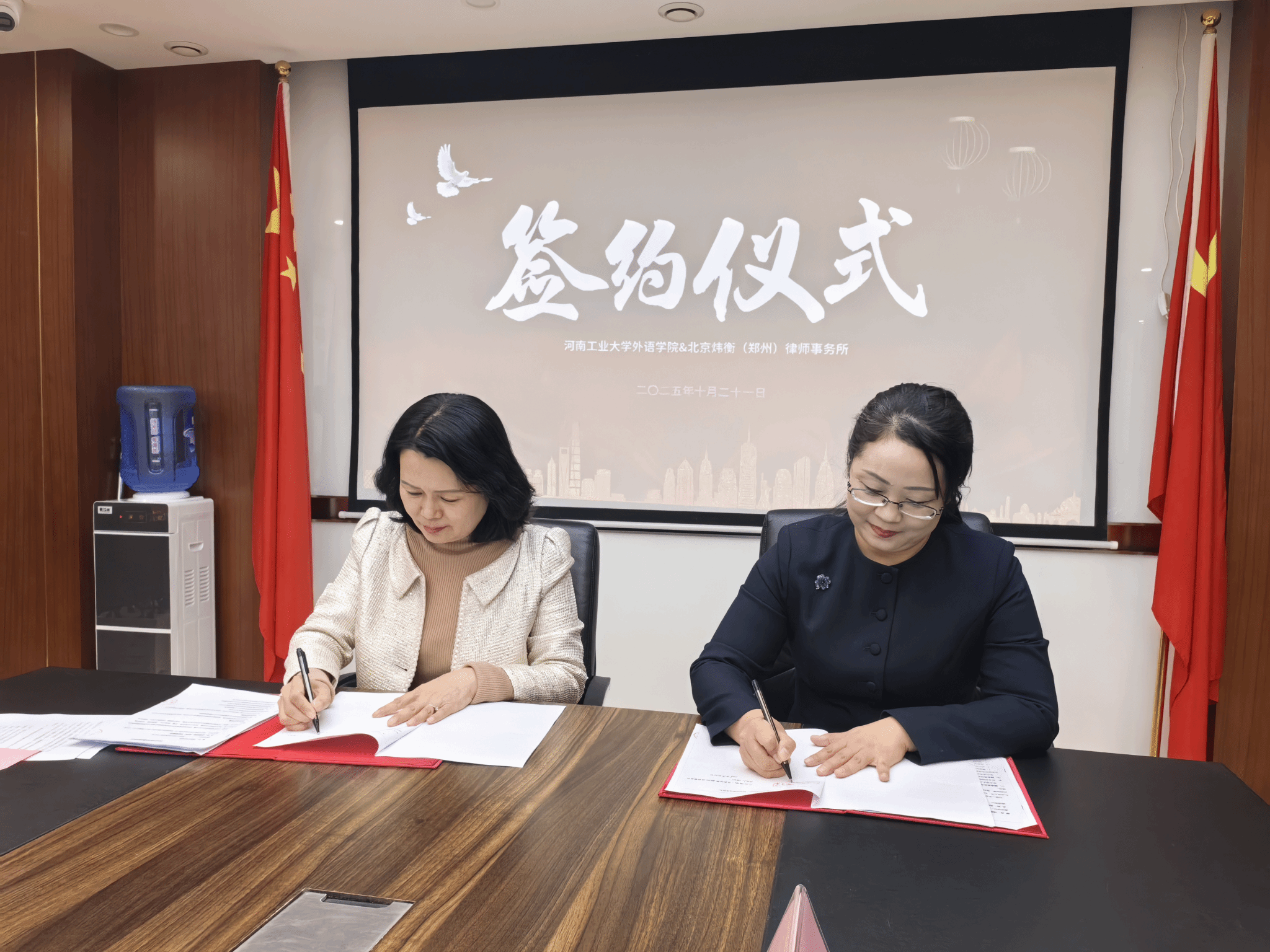 院长黄辉辉与炜衡郑州所主任董辉共同签署校企合作实训基地协议。这一协议的签署,标志着双方将在学生实习实训、专业课程共建、涉外法律业务研究等领域开展深度合作,为成人无码