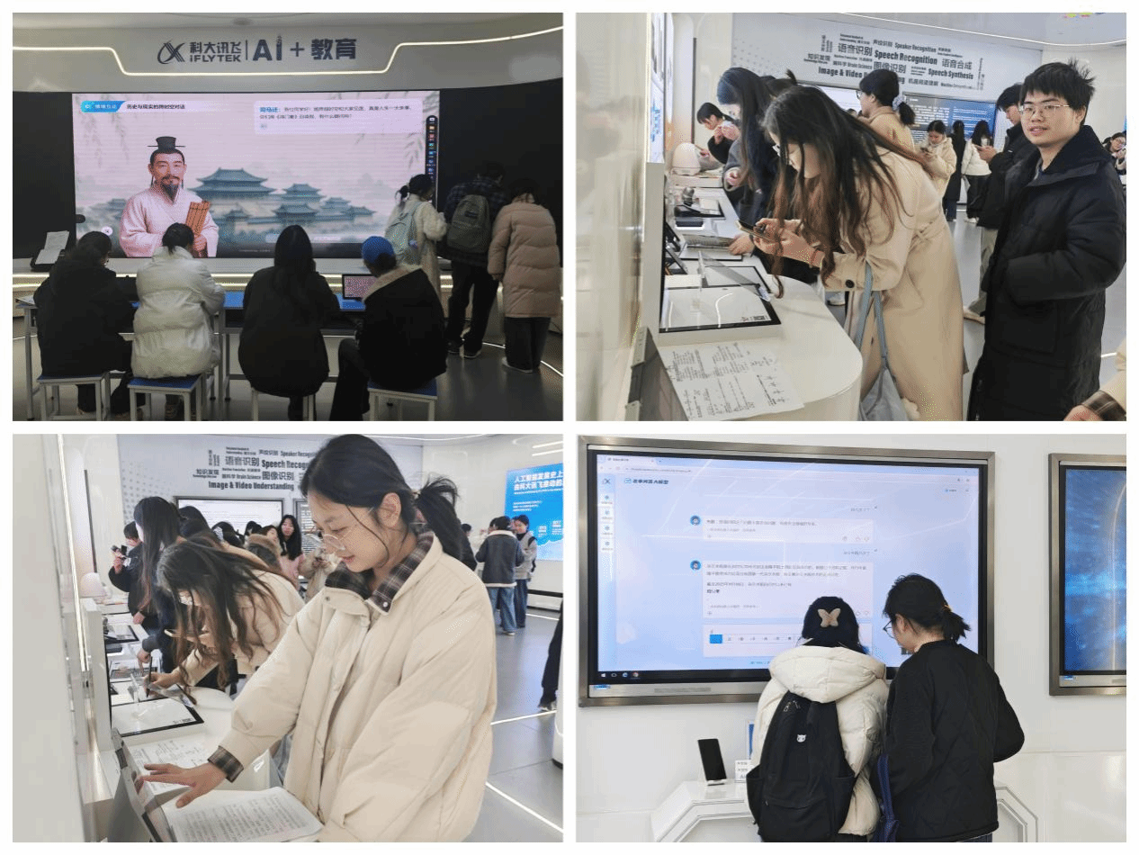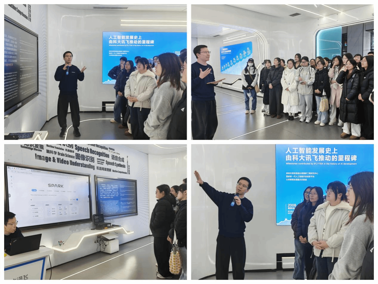 本次见习活动聚焦“AI技术与外语应用”核心主题,活动前期,学院领导与系部主任共同制定了周密详尽的活动计划,为专业见习的顺利开展及长效化推进筑牢基础。活动当天,学生们在科大讯飞工作人员的专业引导下,有序走进人工智能展厅,开启沉浸式探索之旅。