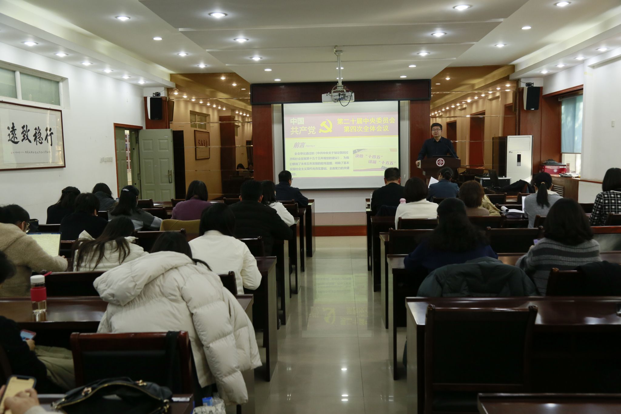 在5225会议室召开党的二十届四中全会精神专题宣讲会。全体教职工参会,会议由院党委书记王云涛主持。