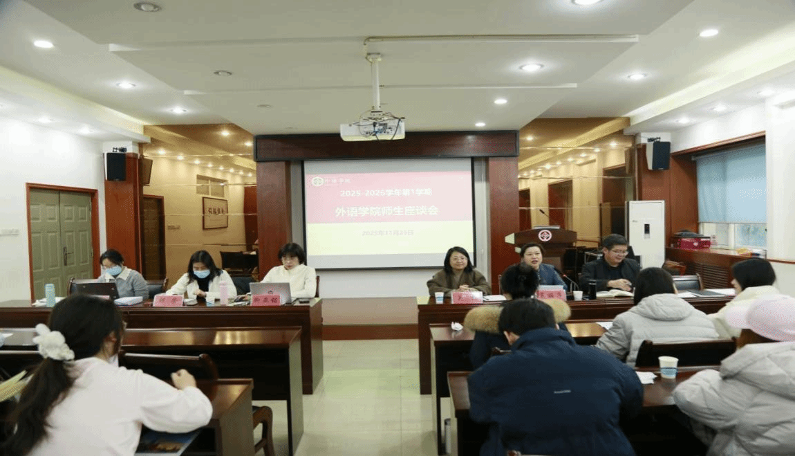 于 11 月 25 日下午在 5225 会议室召开2025-2026学年第1学期期中教学检查学生座谈会。会议由副院长葛丽萍主持,校督导委员关杨、学院副书记王晓东、系部主任和学生代表参会。