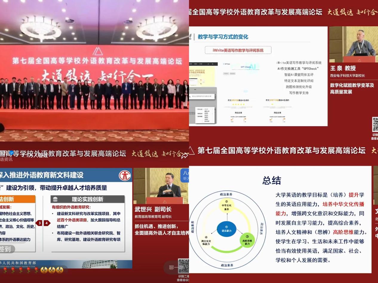 本次论坛由主旨报告、专题论坛和专题活动三部分组成,中宣部领导、教育部领导、教指委专家及两千余位高等外语教育界专家学者齐聚北京,凝聚“大道致远 知行合一”共识,聚焦“四新”建设、“一流课程”建设、国际传播人才培养、数字化赋能外语教学、教材建设、教师发展等核心议题,呈现了一场共话外语教育教学发展的创新与变革、挑战与机遇的学术盛宴。