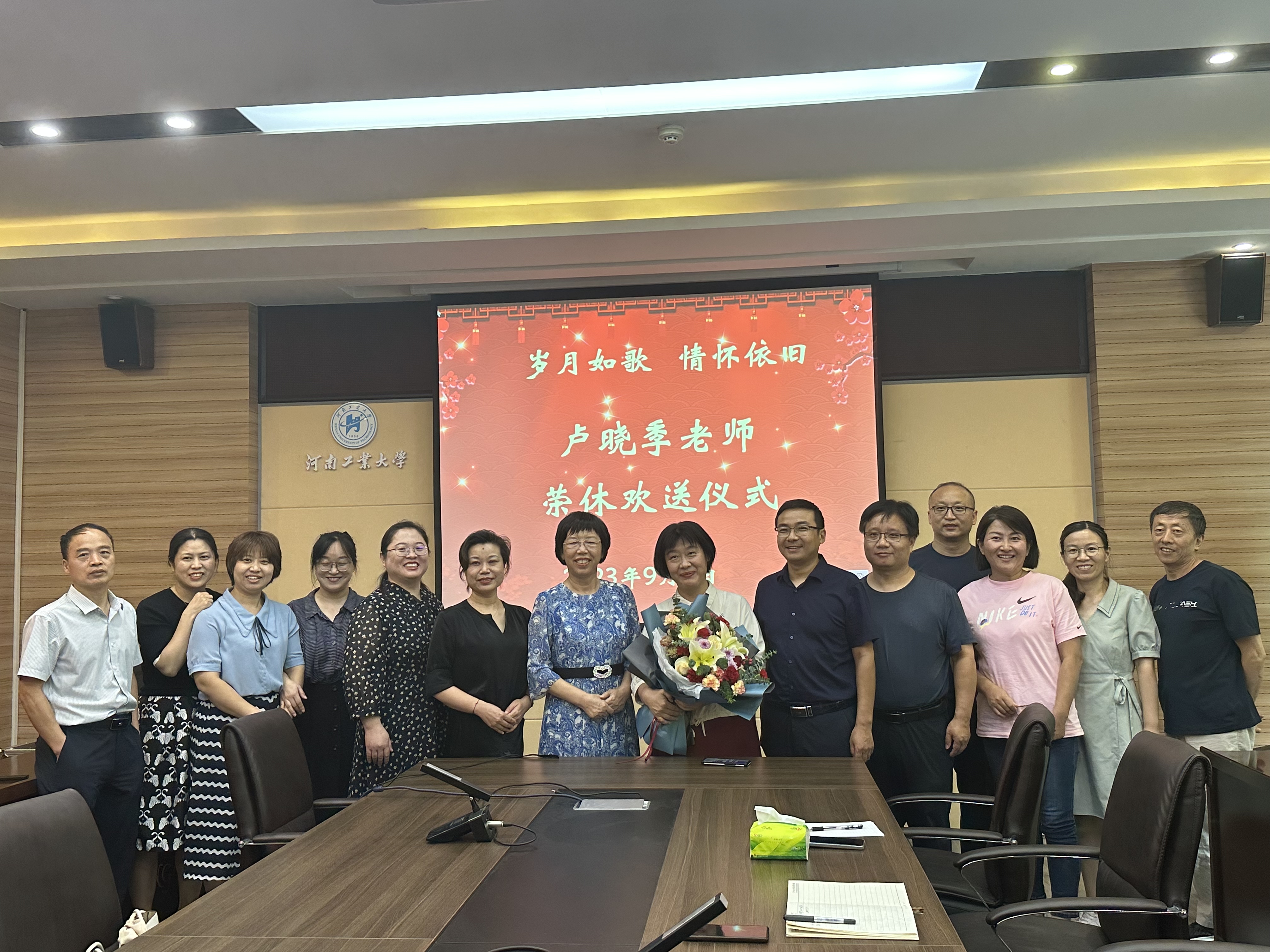 院党委书记王云涛代表学院向卢晓季老师表示感谢,感谢卢老师为教育事业奉献了自己的青春芳华、为学院发展献计献策,希望卢老师退休不退志、卸任不卸责、离岗不离心。王云涛和副院长葛丽萍为卢老师献上荣休纪念品和鲜花。卢晓季老师分享了三十多年来教学生涯的感悟与体会,话语中饱含了对教育事业的热忱和对学院以及同事们的眷恋,并祝愿全体教职工健康相伴、幸福相随。与会教师代表回顾了与卢晓季老师共事的点点滴滴,表达了美好祝愿,殷殷祝福声为卢晓季老师的教学生涯画上一个圆满的句话。