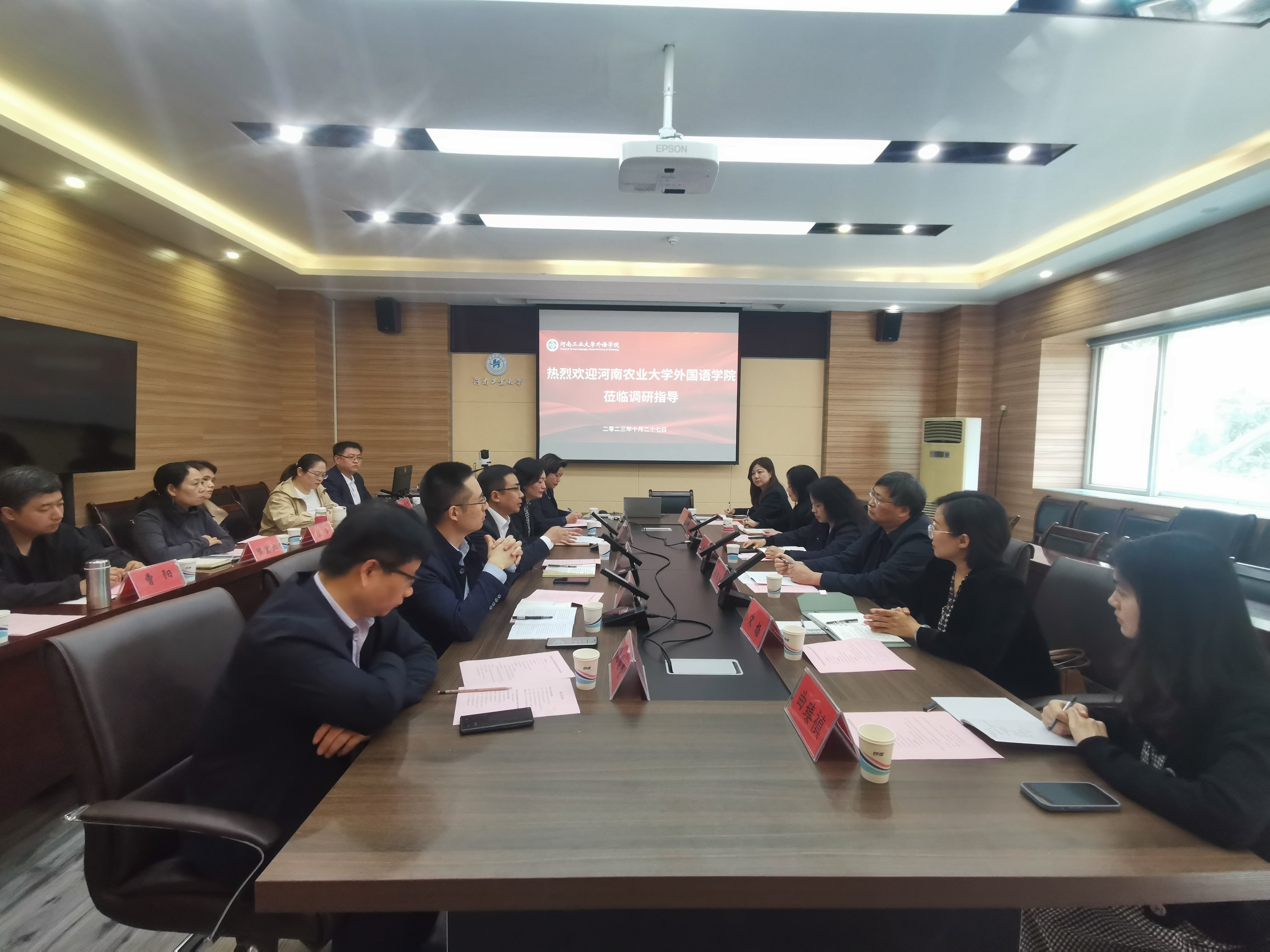 随后,双方就本科教育教学审核评估、外语教学大赛、语音实验室建设、学生学科竞赛及学生就业创业等相关工作进行了深入交流。