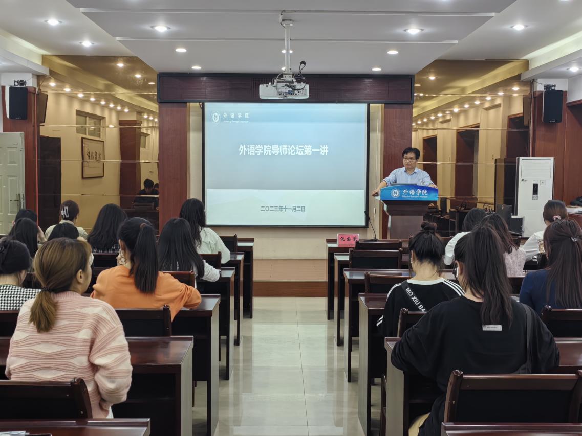 硕士生导师刘希瑞博士在5225会议室为全院师生带来了题为“中国学习者英语韵律焦点习得实验研究”的精彩学术讲座。学院教师、硕士研究生、本科生参加了此次论坛,论坛由副院长沈国荣主持。