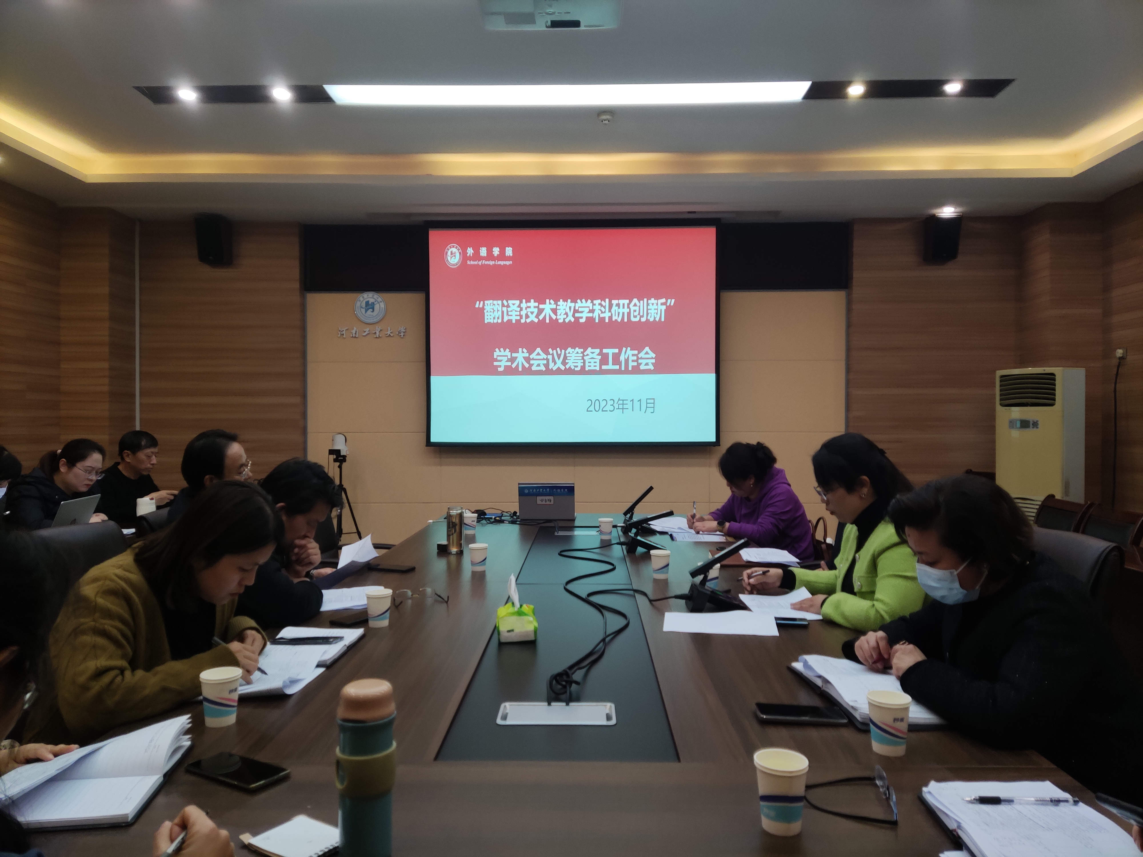在5231会议室召开第三届全国“翻译技术教学科研创新”暨中华典籍外译及国际传播专题论坛筹备工作会。学院领导班子、会议筹备工作组全体成员参加,会议由院长黄辉辉主持。
