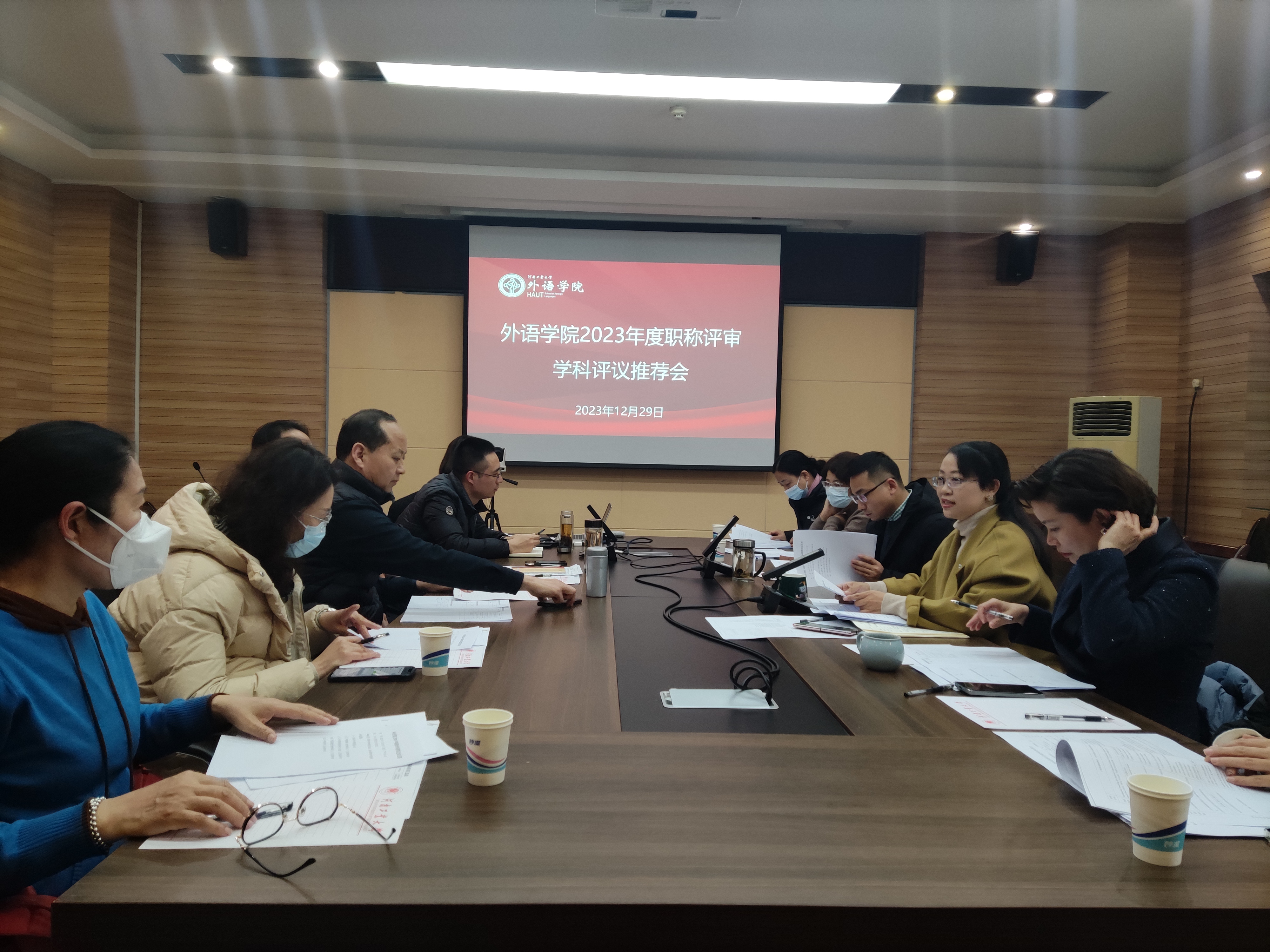 在5231会议室召开2023年度职称评审学科评议推荐会,申报晋升专业技术职务的7位教师在会上进行了述职和答辩。