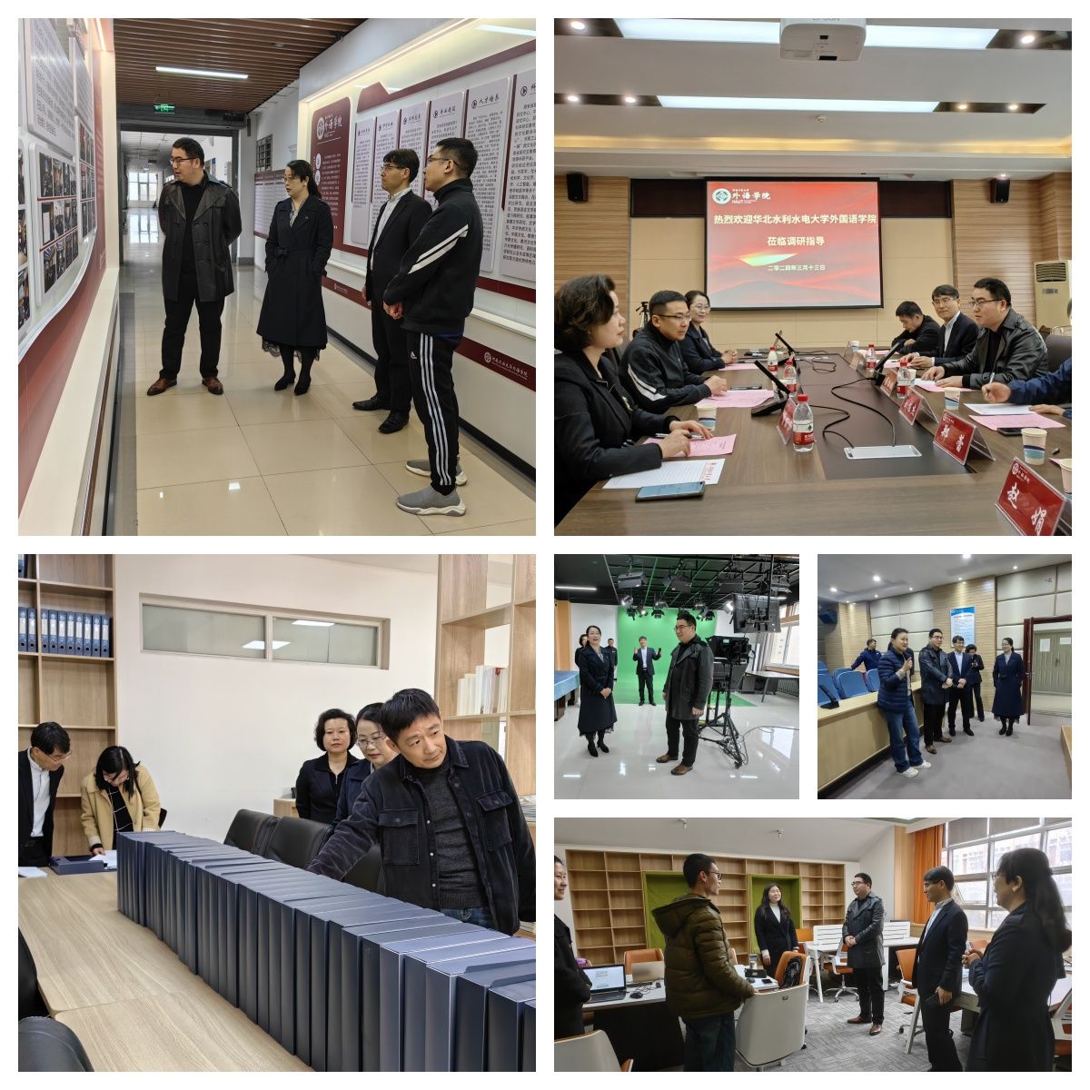 座谈会前,华北水利水电大学外国语学院党委书记孟治刚、副院长庞彦杰一行走访资料室调研了学院评估材料及各种教学管理制度等,并参观了学院的文化墙建设及资料室、档案室和语言实验教学中心。
