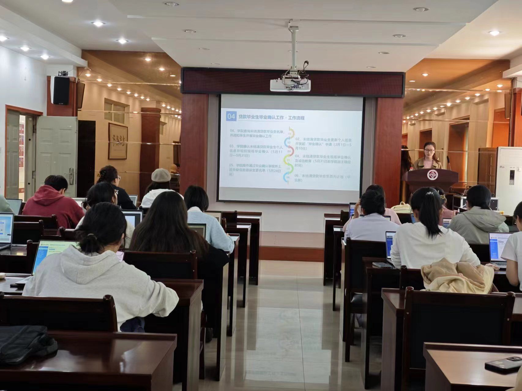 此次会议对于学院2024届贷款毕业生了解资助政策具有重要意义,不仅帮助贷款毕业生掌握了助学贷款的还款流程和还款方法,增强了贷款毕业生的诚信意识和感恩意识,也为学院学生资助贷后管理工作的开展奠定了坚实的基础。(撰稿:吕明环 摄影:吕明环 审校:王云涛 审核:王云涛)