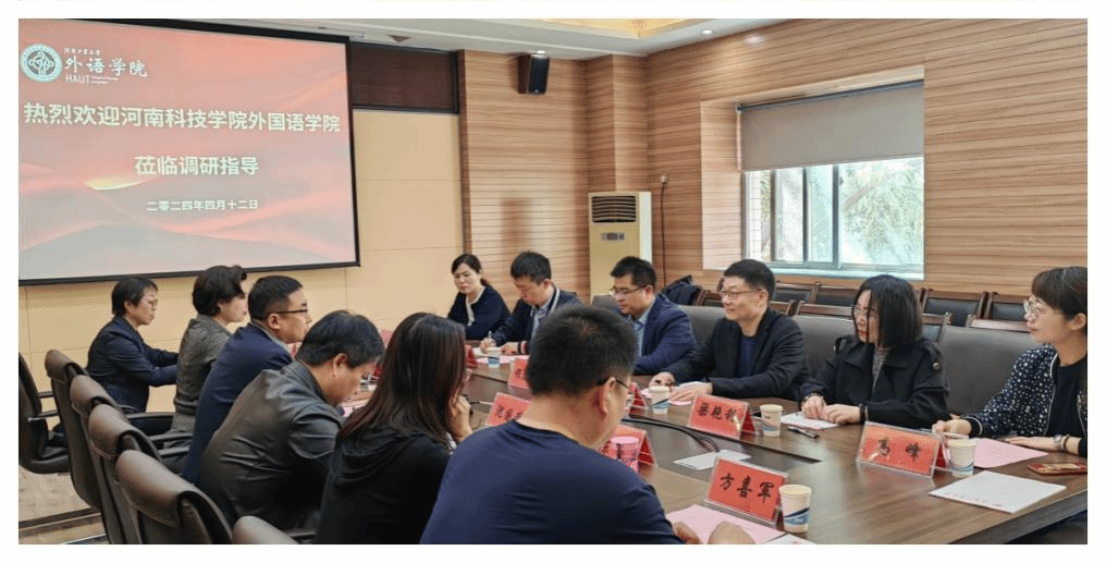 4月12日上午,河南科技学院外国语学院副院长程建锋、张志超等一行6人到成人无码