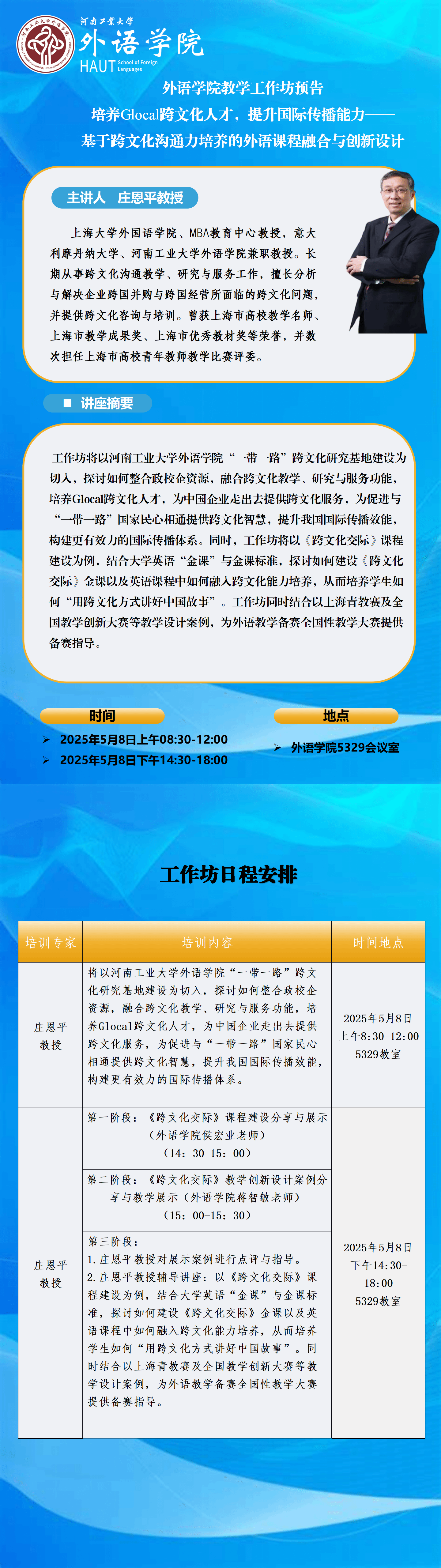 成人无码 教学工作坊预告:培养Glocal跨文化人才,提升国际传播能力 ——基于跨文化沟通力培养的外语课程融合与创新设计