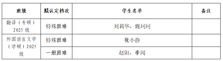 家庭经济困难学生认定结果