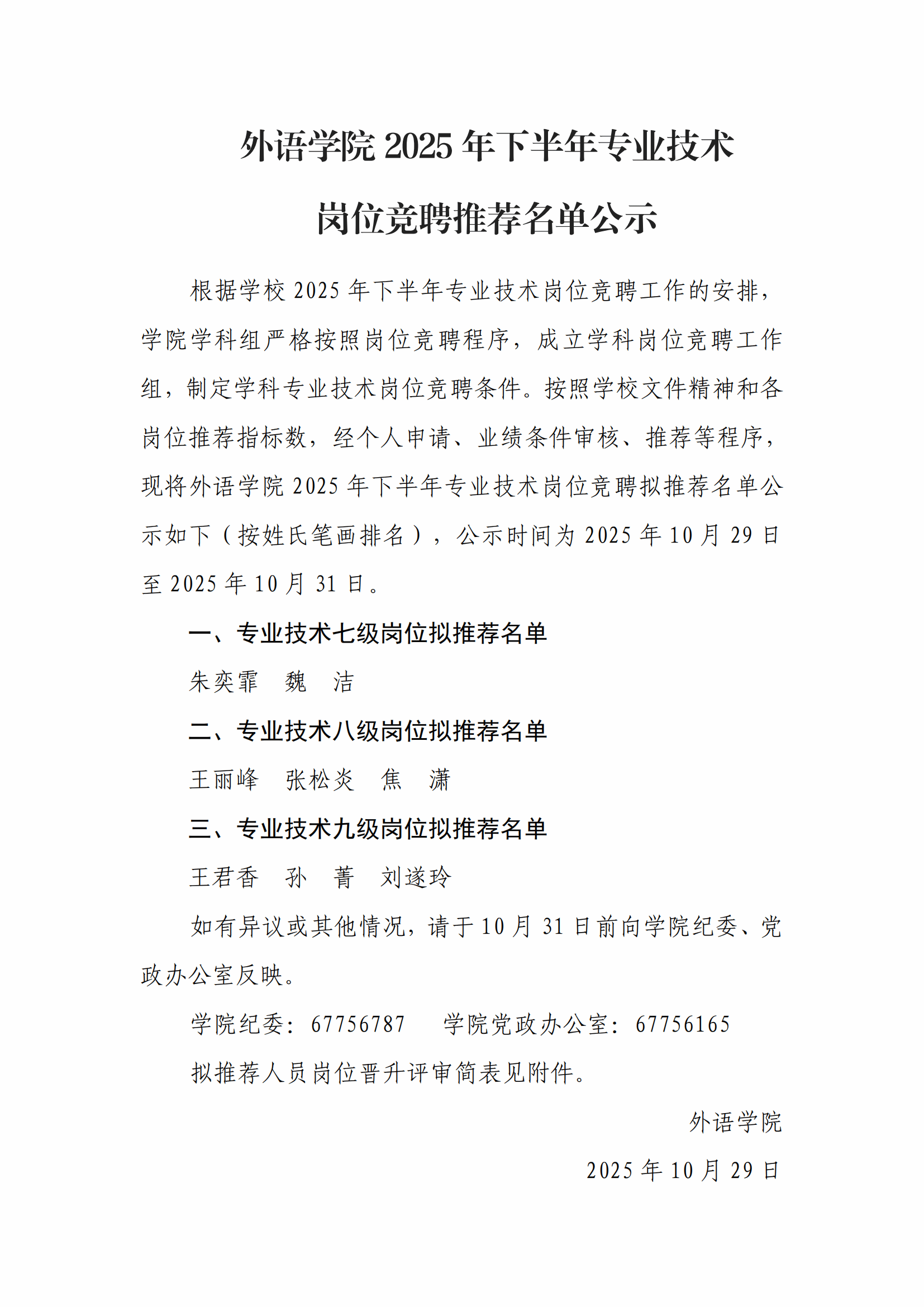 成人无码 2025年下半年专业技术岗位竞聘推荐名单公示
