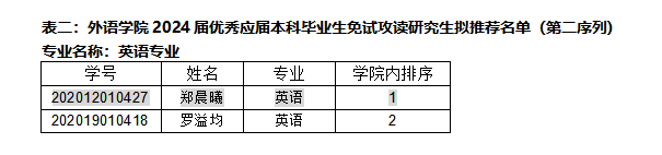 推荐免试攻读硕士学位研究生工作实施细则》(院政发〔2023〕28号)的要求,经广泛动员、个人申请、材料审核、学院推免遴选工作小组审定,在预推荐名单公示后,根据学校最终下达分配给学院的指标方案和指标数量,经学院推免遴选工作小组审定,按照分配名额的1.5倍进行公示,拟推荐名单(分两个序列),如表1和表2所示。