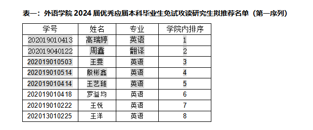 (1)表1中的序号1-5为学院拟推荐名单,余下为递补名单;