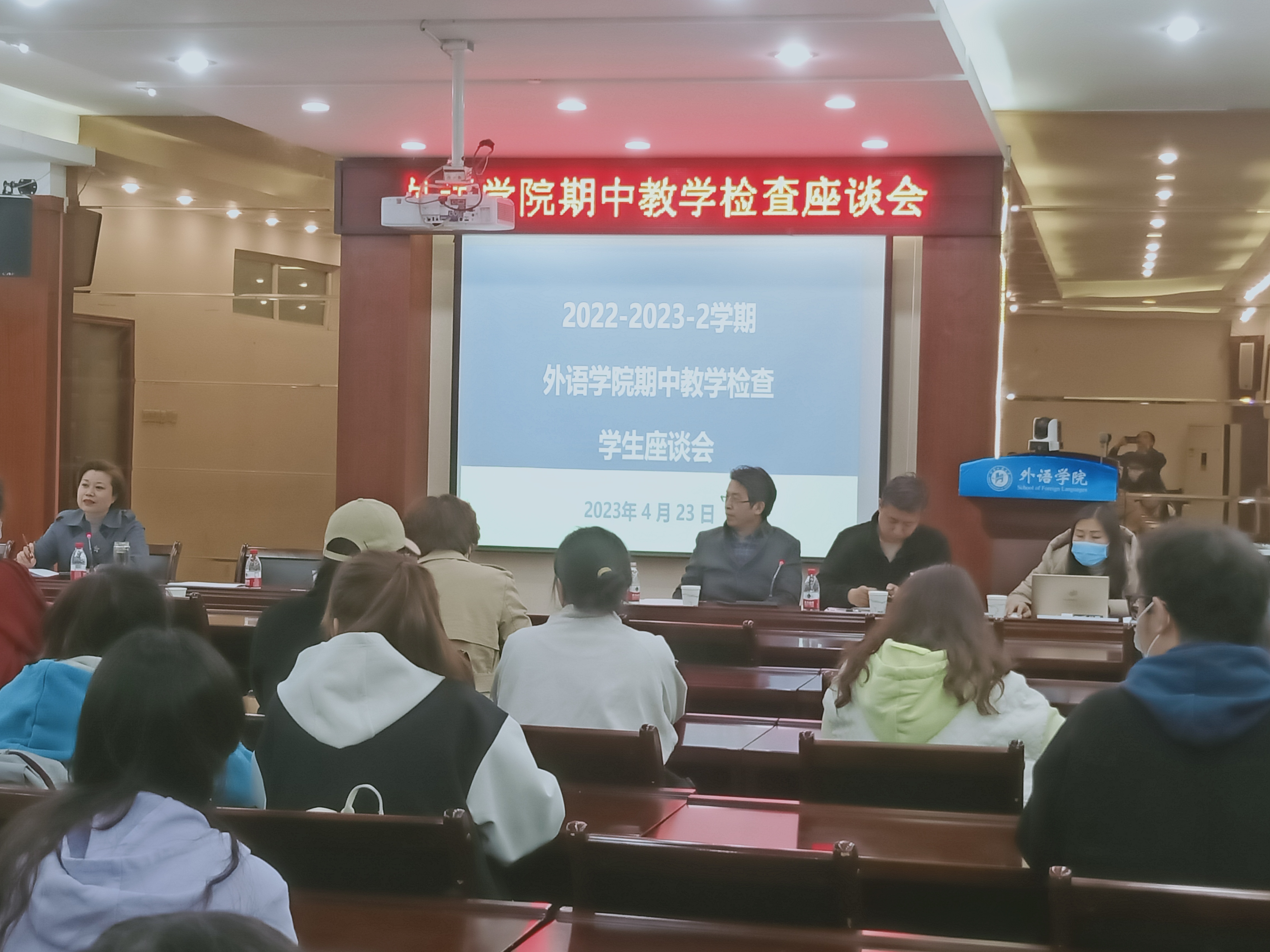 在学生座谈会上,学生代表踊跃发言,对学院教师课前的精心准备、授课方法多样、注重教学创新等表示肯定。同时就如何优化课堂活动、合理分配线上线下课堂比重、完善教学设施等问题提出了中肯的意见和建议。