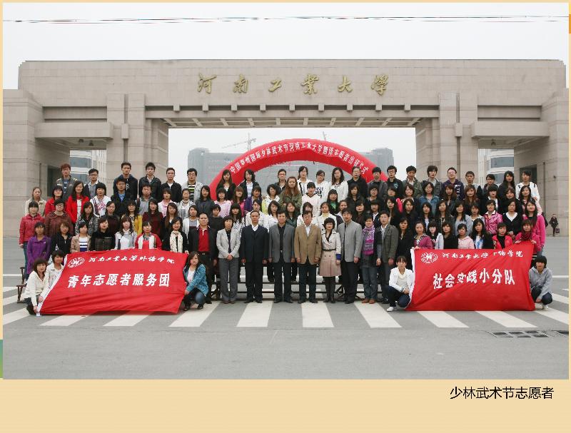国际交流与合作处共同承担“发展中国家粮食安全研修班”、“发展中国家中国少林武术培训班”、“发展中国家粮食储藏技术培训班”等国家援外项目的志愿翻译工作。